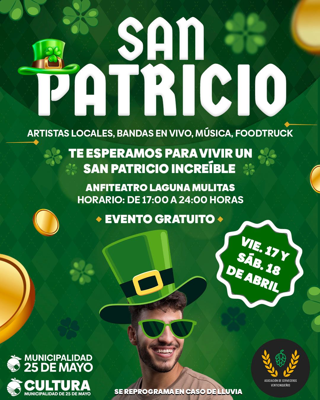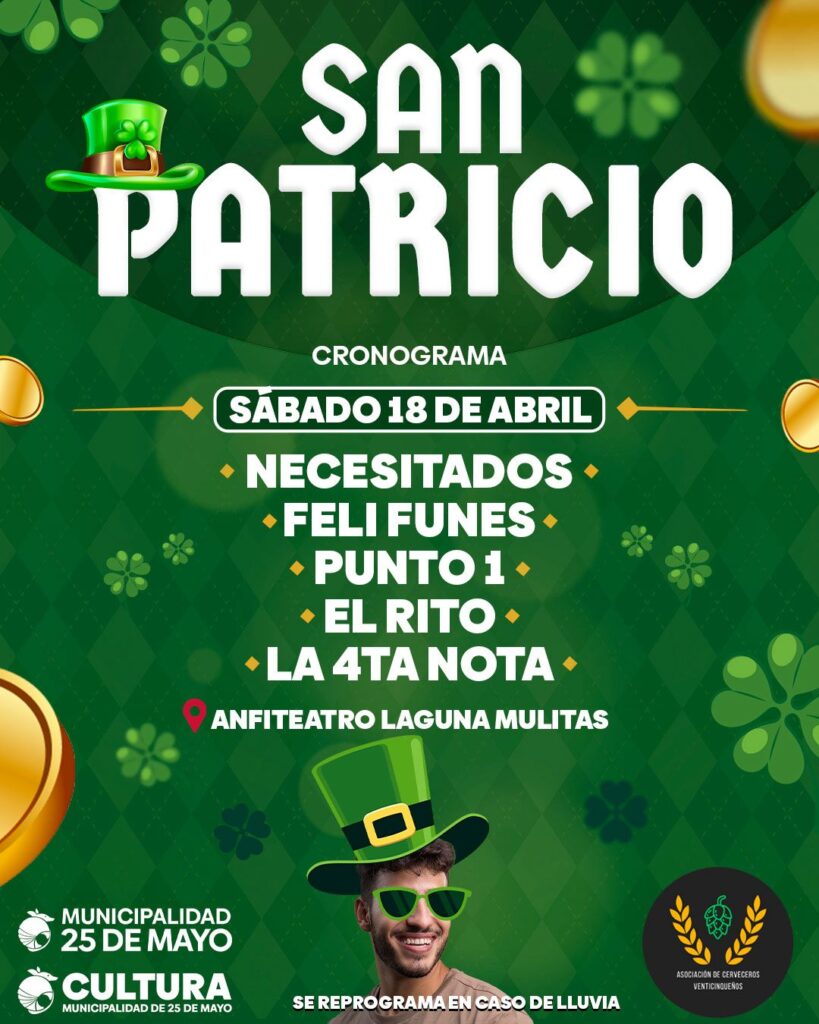 La ciudad de 25 de Mayo se prepara para vivir una nueva edición de la fiesta de Día de San Patricio con una propuesta que combina música en vivo, gastronomía y cultura en un entorno natural único.
